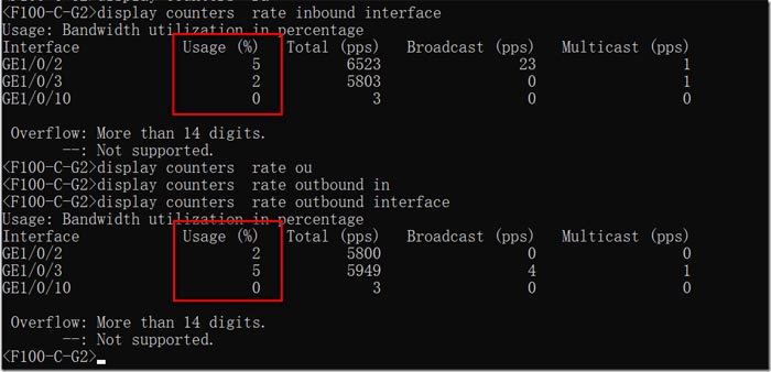 在上面的输出中,InUti和OutUti分别表示接口的输入和输出带宽利用率。
